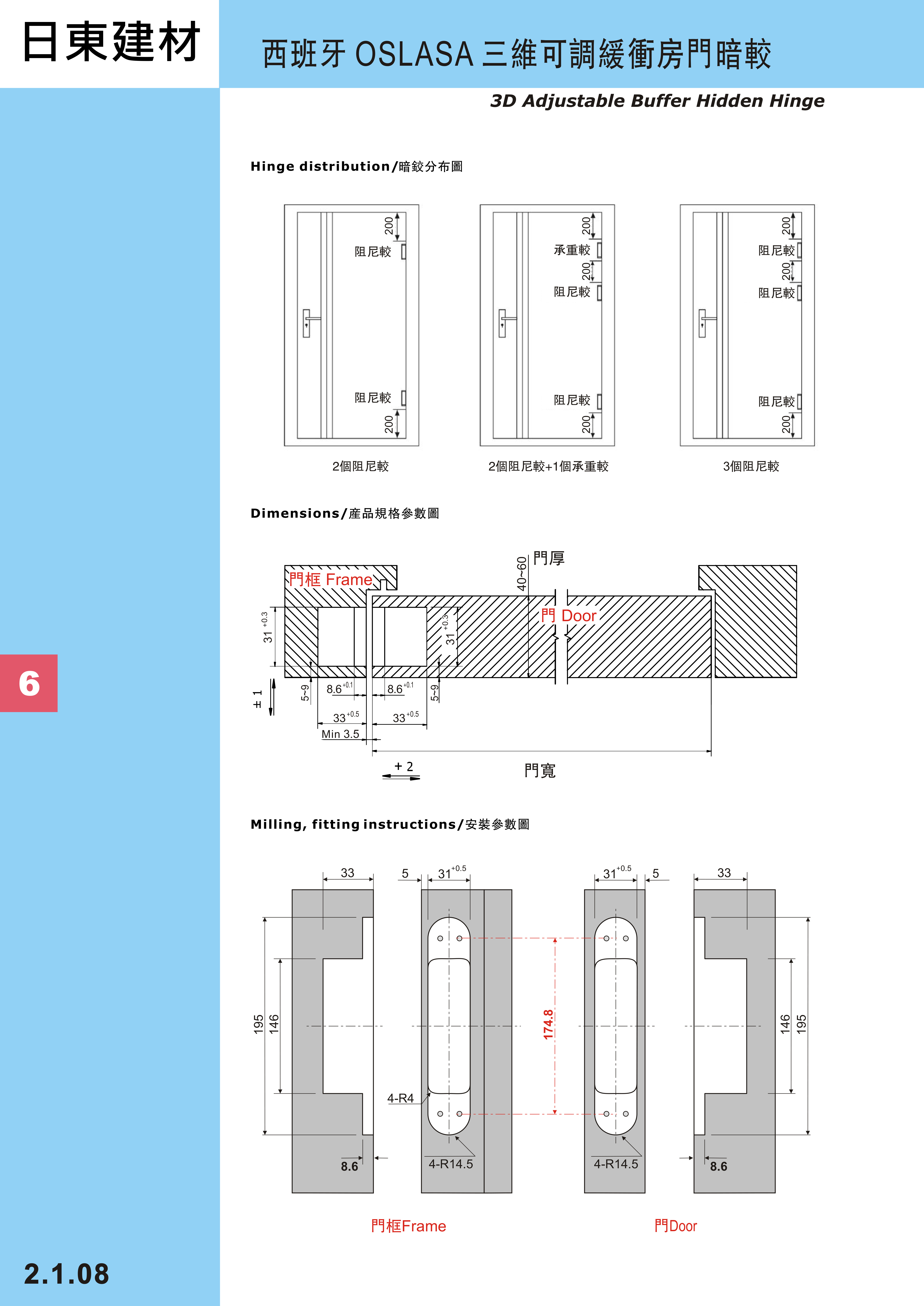 -打開角度小于68°帶緩衝關門-三維調節:左右+2mm;上下+2.5mm;前後±1mm-鋼制前蓋