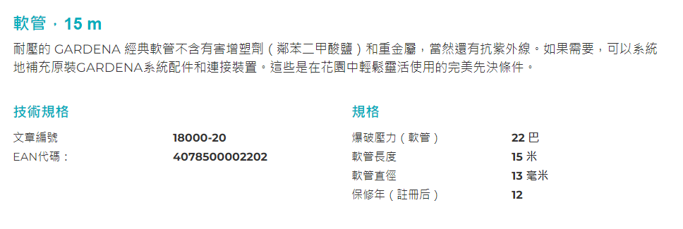 "GARDENA" 4分(13mmx15m)德國Classic藍色花園喉(22BAR)-[18000]