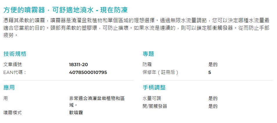 "GARDENA" 德國經典款花灑水槍(1功能)(彩色卡紙裝)(5個/盒)-[18311]