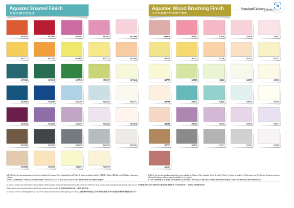 *不同顯示器因顯示技術導致顔色上可能會有差異。因此在選購油漆色漿時,應以實體色卡或現場調色為準。