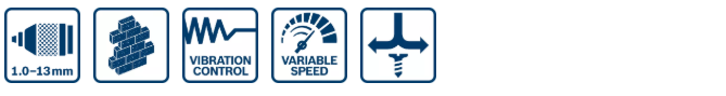 此工具適合在混凝土、磚牆、木材和金屬鑽孔和鑿削。與多種除塵附件相容。