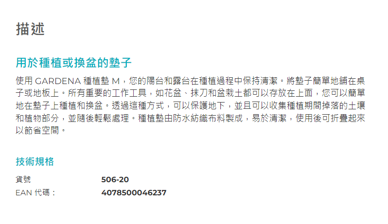 "GARDENA" 德國100x120cm加厚防水種植地墊(2塊/盒)-[506]