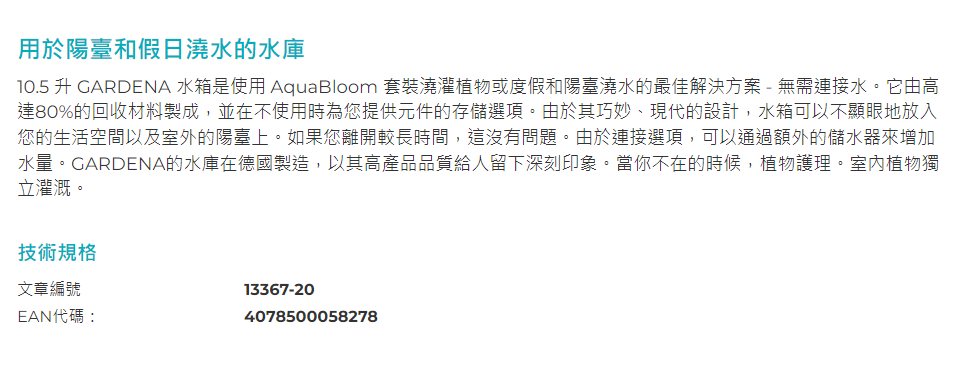 "GARDENA" 德國10.5L收納儲水桶(3個/盒)-[13367]
