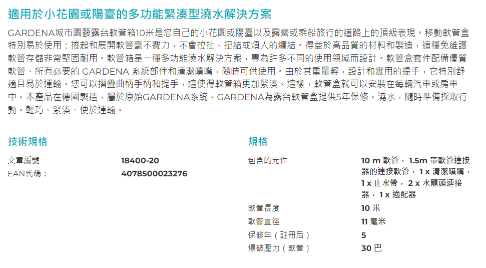 "GARDENA" 德國10m-11mm喉便攜式迷你喉架套裝(1套/盒)-[18400]