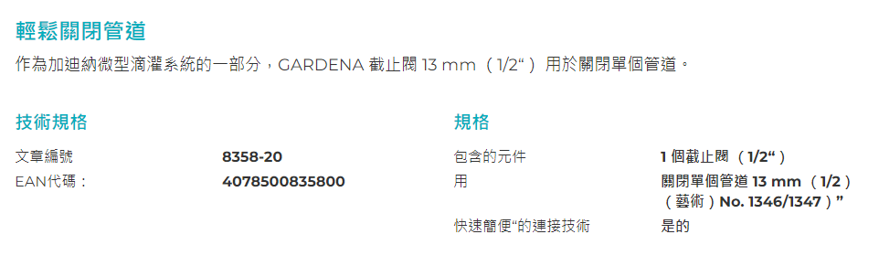 "GARDENA" 德國1/2"(13mm)水量調節閥(6包/盒)(1個/包)-[8358]