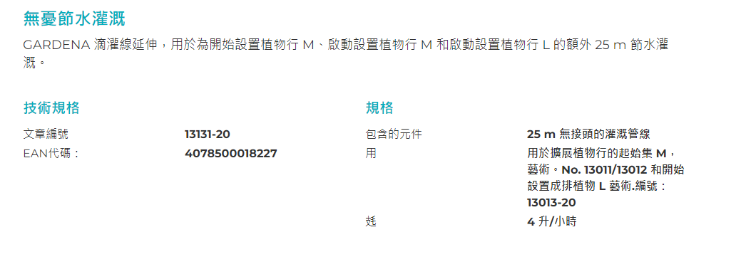 "GARDENA" 德國1/2""x25m地面有孔滴灌(30cm孔距-4L/h流量)(1卷/盒)-[13131]