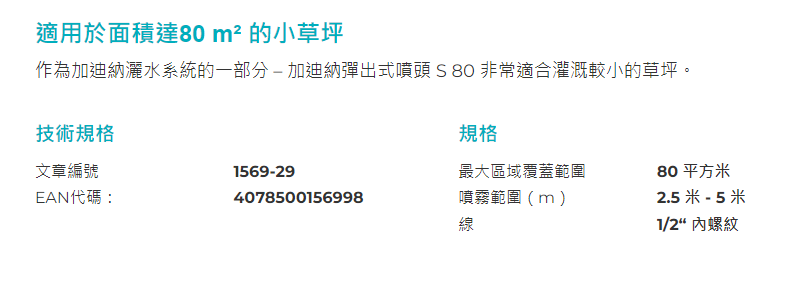 "GARDENA" 德國1/2"內螺紋簡易型地埋可調彈出灑水器(s80)(15個/盒)-[1569-29]
