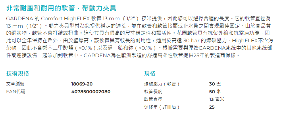 "GARDENA" 德國13mm(1/2")X50m Comfort HighFLEX 橙色花園喉-[18069]