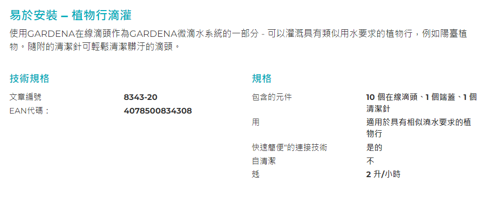"GARDENA" 德國2L/h精準灌溉連接滴頭(管末塞x1)(清潔針x1)(10包/盒)(10個/包)-[8343]