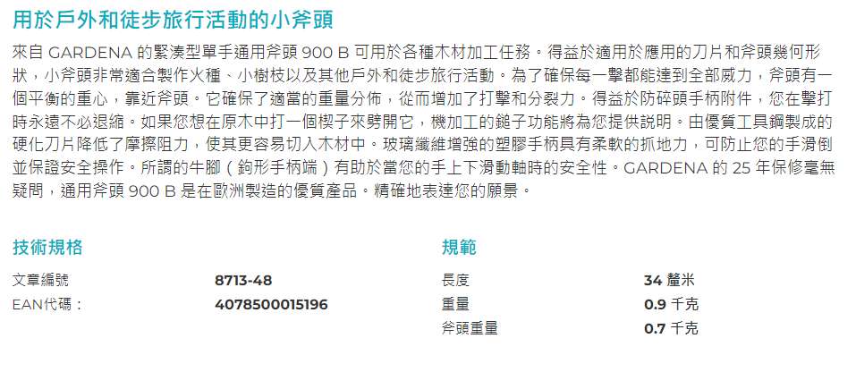 "GARDENA" 德國34cm短柄雙刃斧(4把/盒)-[8713-48]