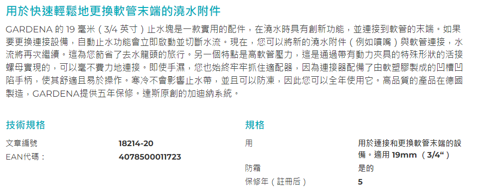 "GARDENA" 德國3/4"截流吸輪(吸塑裝)(12個/盒)-[18214-20]