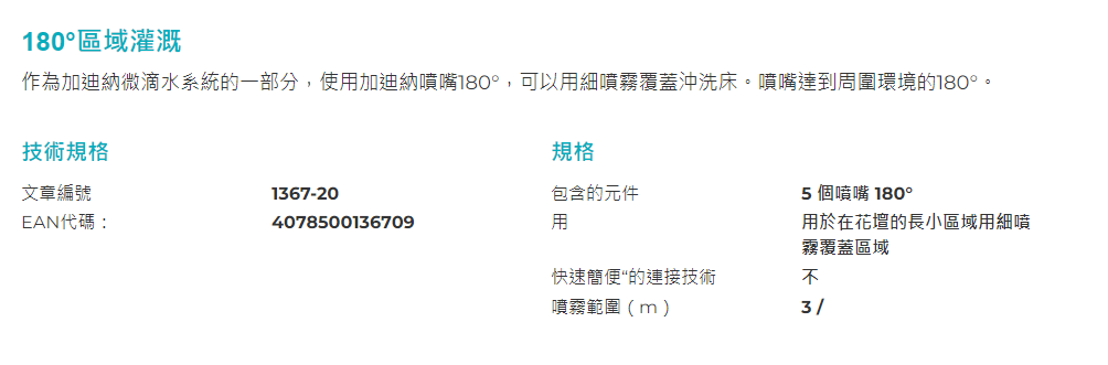 "GARDENA" 德國3m範圍 範圍性澆灌180°出水噴頭(6包/盒)(5個/包)-[1367]