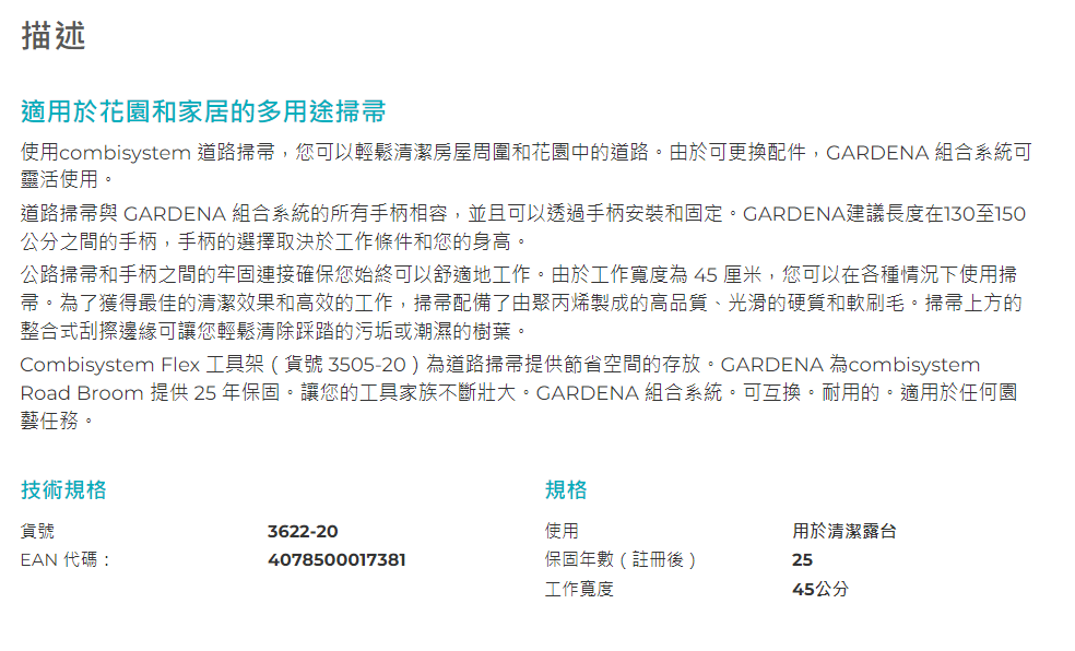 "GARDENA" 德國45cm組合式戶外掃把頭(5個/盒)-[3622]