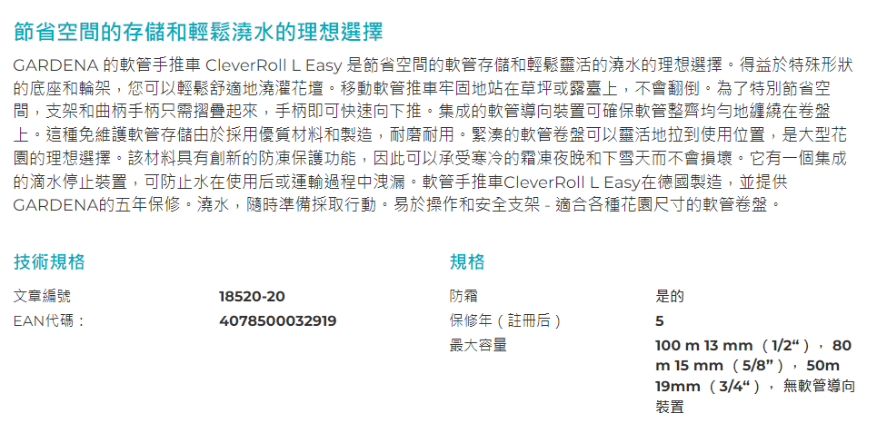 "GARDENA" 德國喉架L(帶滑輪)(淨架)(1套/盒)-[18520]