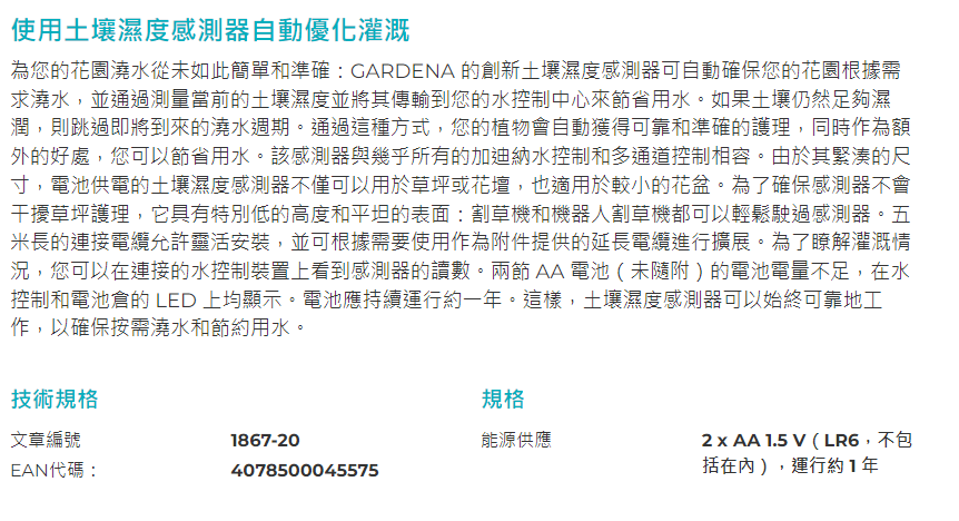 "GARDENA" 德國土壤濕度感應器(可搭配型號1890/1891/1892/1874)(2個/盒)-[1867]