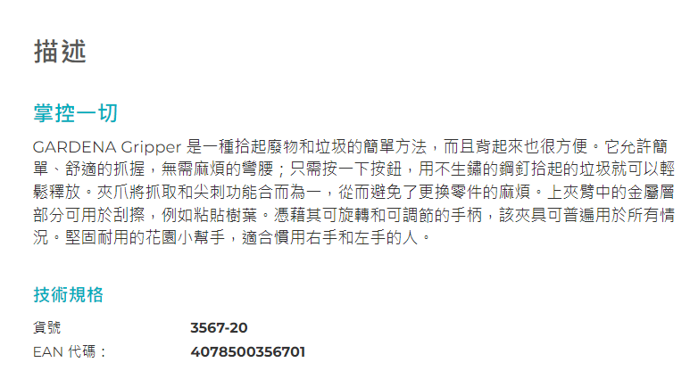 "GARDENA" 德國多用途拾撿夾(5把/盒)-[3567]