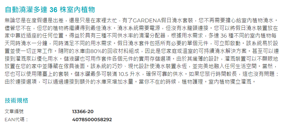 "GARDENA" 德國家用自動微滴灌套裝(36盆植物)(3套/盒)-[13366]