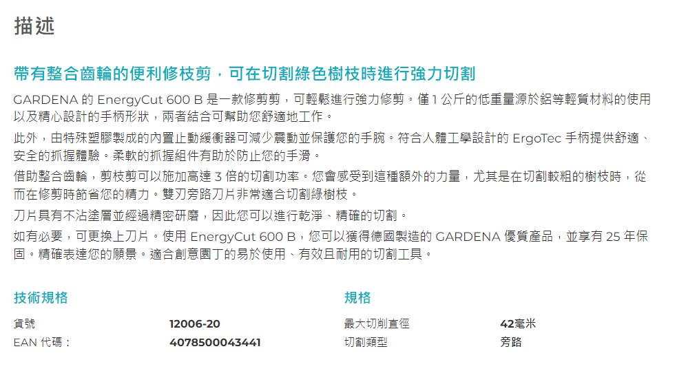 (剪切直徑42mm/長度600mm) (翠綠粗枝用) (2把/盒)