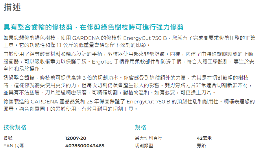 (剪切直徑42mm/長度750mm) (翠綠粗枝用) (2把/盒)