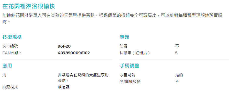 "GARDENA" 德國立地式花灑(1功能)(彩色卡紙裝)(2個/盒)-[961]