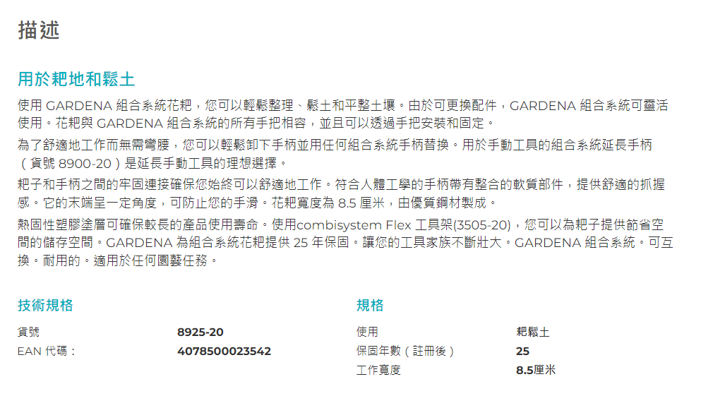 "GARDENA" 德國組合式五齒鬆土耙-[8925]