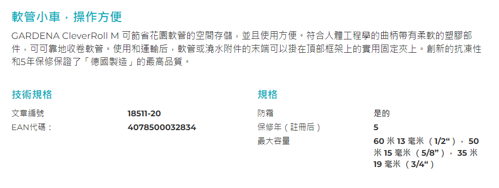 "GARDENA" 德國車仔型喉架轆M(淨架)(1個/盒)-[18511-20]