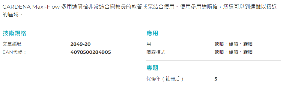 "GARDENA" 德國長柄水槍(3功能)(大流量水壓用)(4個/盒)-[2849]