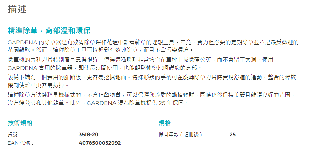 "GARDENA" 德國除雜草器(4把/盒)-[3518]