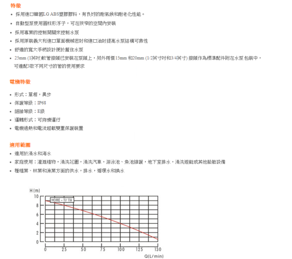 "GARDEN"(world)實用型潛水泵(無制)