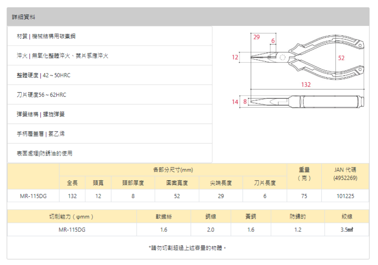 "KING-TTC" 4-1/2"(115mm)幼尖咀鉗(厚膠柄)