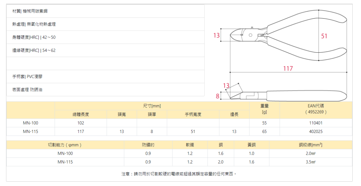 "KING-TTC" 4"(100mm)電子用斜口鉗
