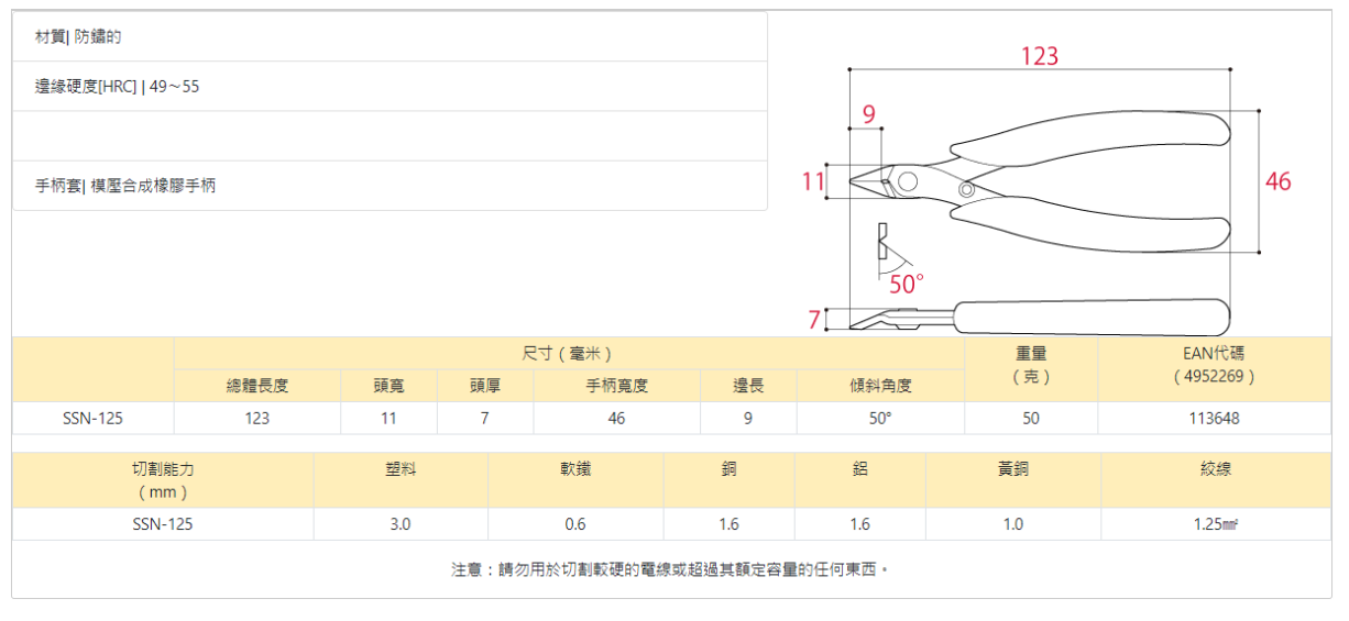 "KING-TTC" 5"(125mm)不銹鋼圓錐形電子斜口鉗