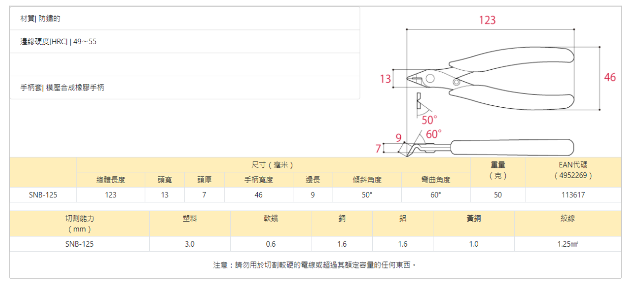 "KING-TTC" 5"(125mm)不銹鋼電子斜口鉗(曲咀)