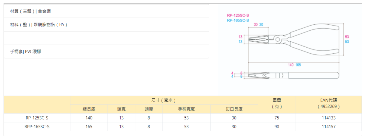 "KING-TTC" 5"(125mm)包膠咀彈簧尖咀鉗