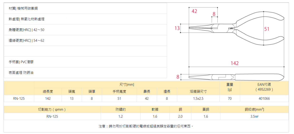 "KING-TTC" 5"(125mm)幼針咀鉗