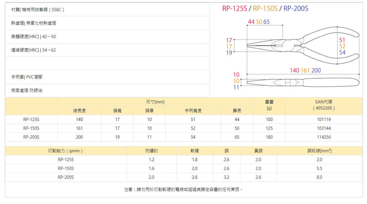 "KING-TTC" 5"(125mm)長型尖咀鉗
