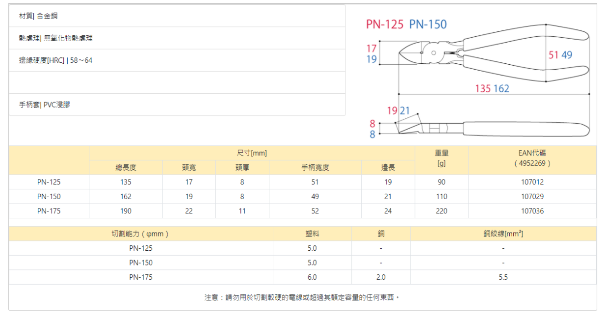 "KING-TTC" 5"(125mm)電工水口鉗
