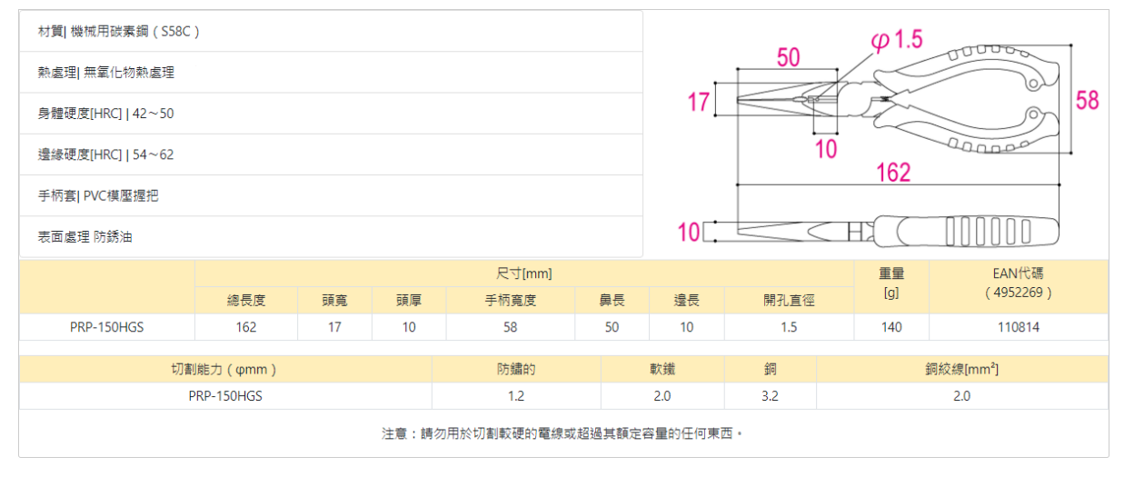 "KING-TTC" 6"(150mm)電工尖咀鉗(厚膠柄)