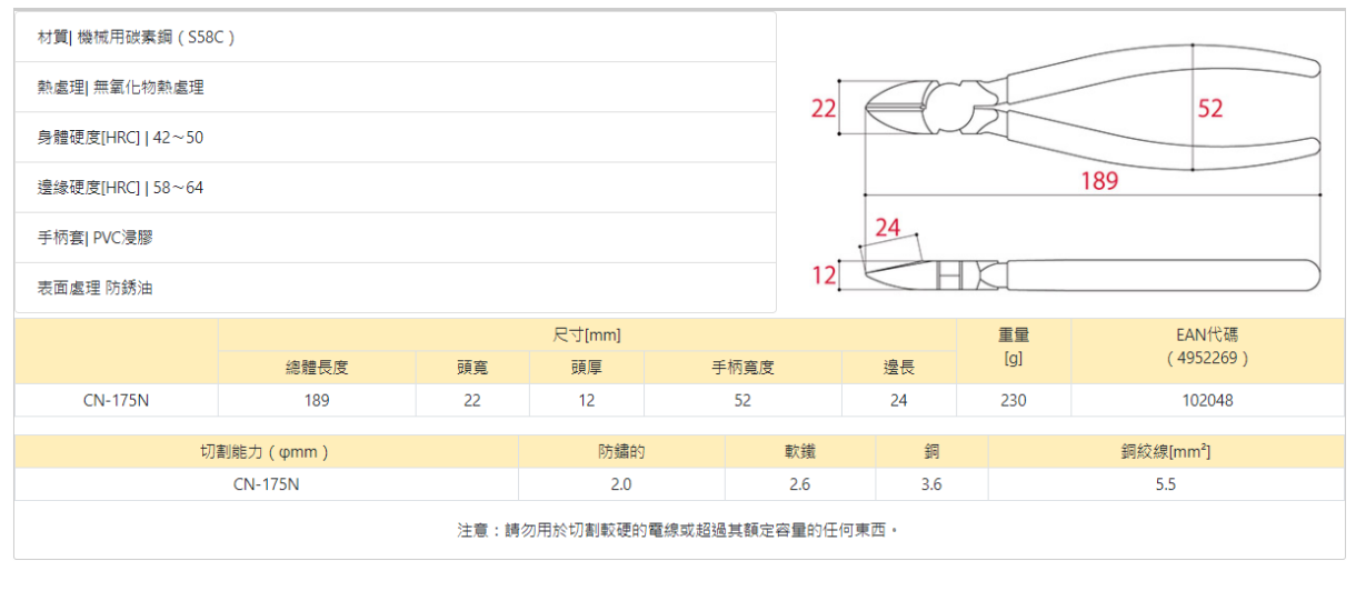 "KING-TTC" 7"(175mm)電工斜咀鉗