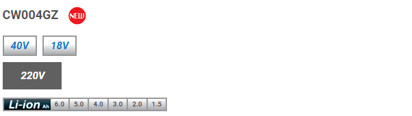 - 四種供電方式:40Vmax電池、18V電池、汽車DC12 - 24、AC電源