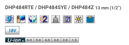 DHP484SYE: 充電器 (DC18SD) 及1.5Ah電池 2pcs
