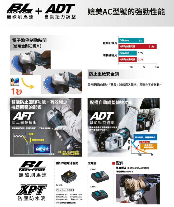 (無碳刷) (側開關) (電子剎車) (鋰18V)