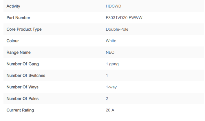 NEO都會(E3000)20A單位直按板雙極連LED燈開關制