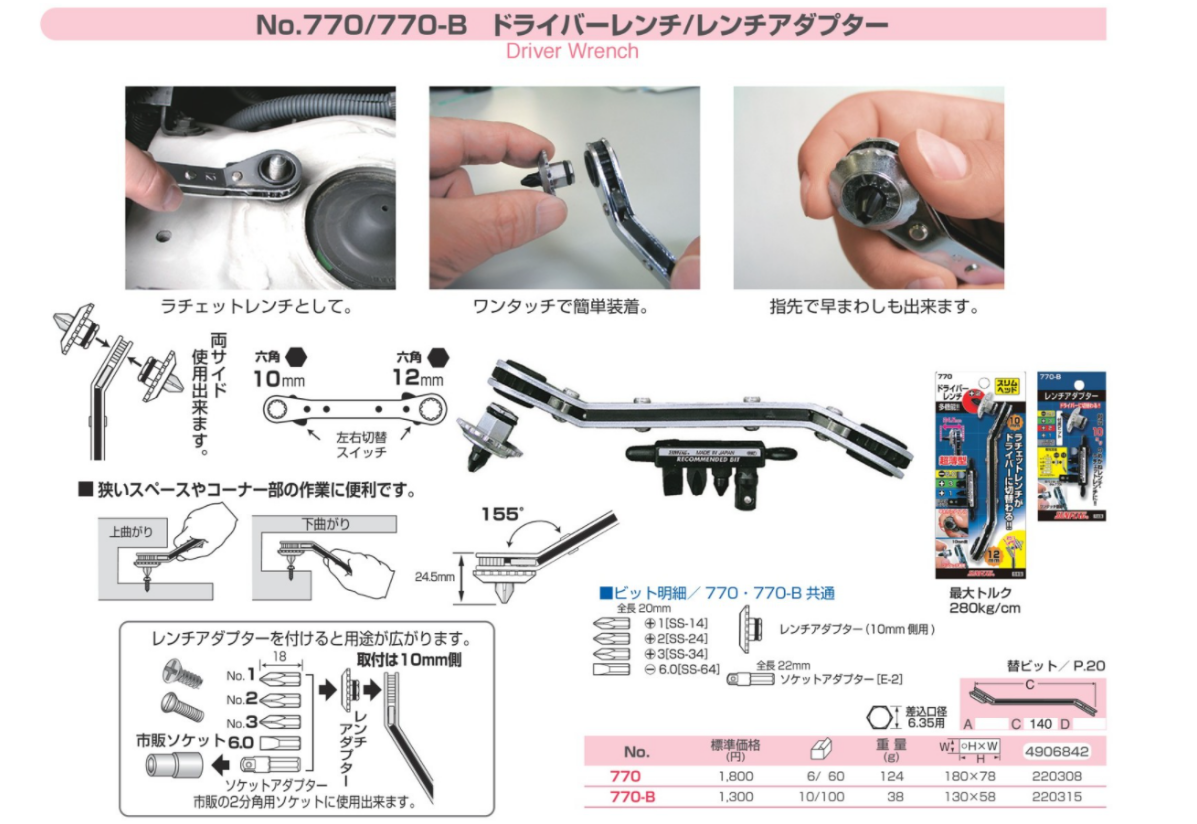 日本"SUNFLAG" NO.770 兩頭25度棘輪活動曲批套裝