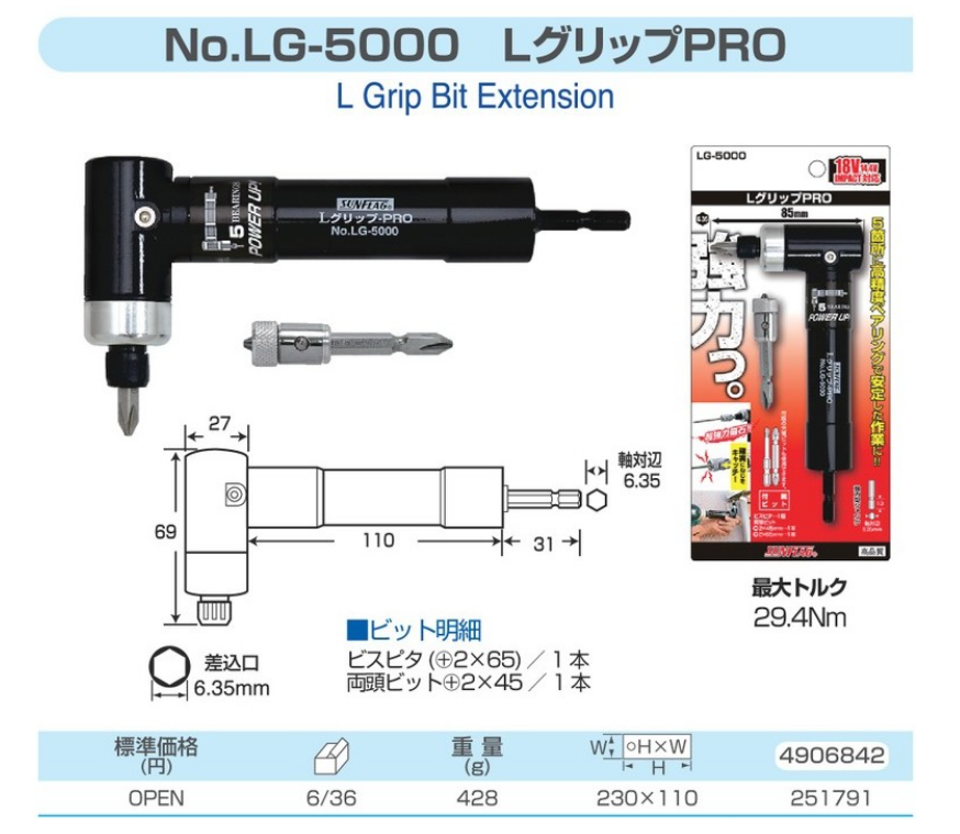 日本"SUNFLAG" NO.LG-5000 L型柄電鑽駁批