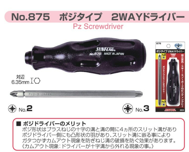 日本"SUNFLAG" 高纖柄兩用(# 2-# 3)POZI專用加硬批