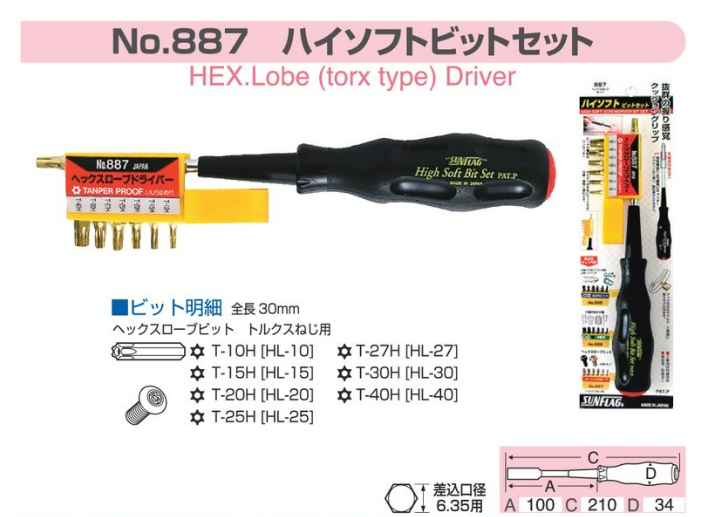 日本"SUNFLAG" 高纖柄加硬批連TORX星批咀套裝 T10-T40H